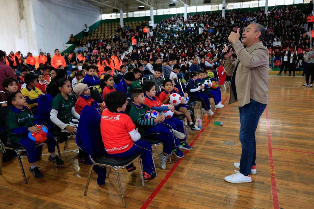 Por la mañana, en este mismo recinto se llevó a cabo el reconocimiento a más de 600 niños de diferentes escuelas de prescolar, primaria y secundaria del municipio por su destacada participación en el Mundialito Escolar 2025.