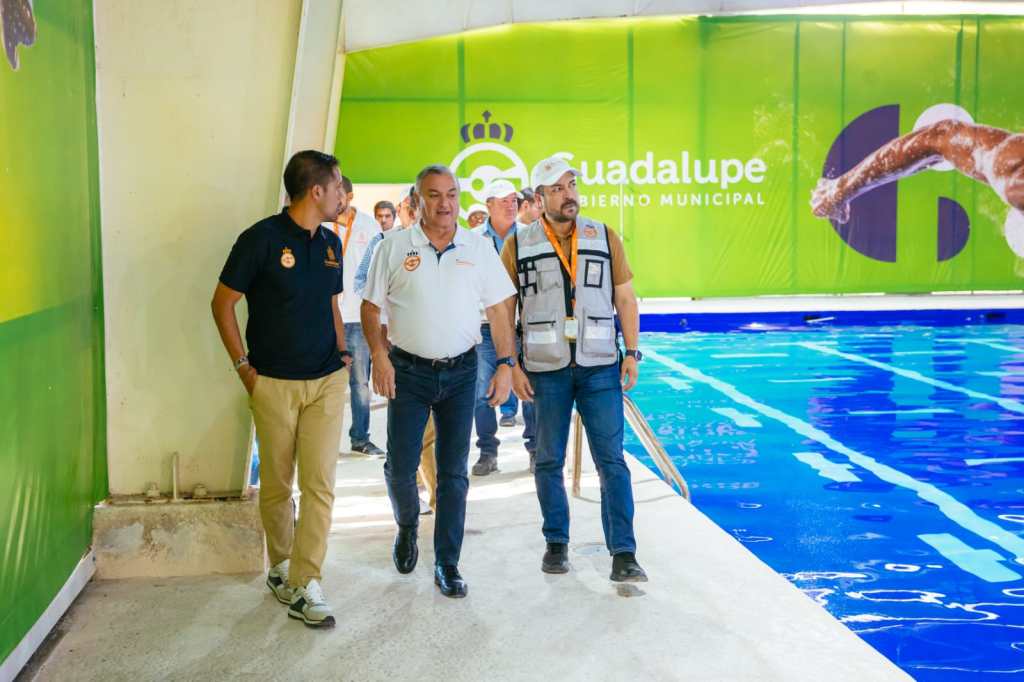 “Estamos muy contentos con la apertura de la alberca olímpica que tiene el Cedereg, estaba en total abandono y ya tiene máquinas nuevas, está por funcionar la caldera, el agua limpia, equipo nuevo de filtración, iluminación nueva; estamos dejando nuevo a Cedereg que es el centro deportivo más importante que tiene Guadalupe”, explicó el alcalde Héctor García.